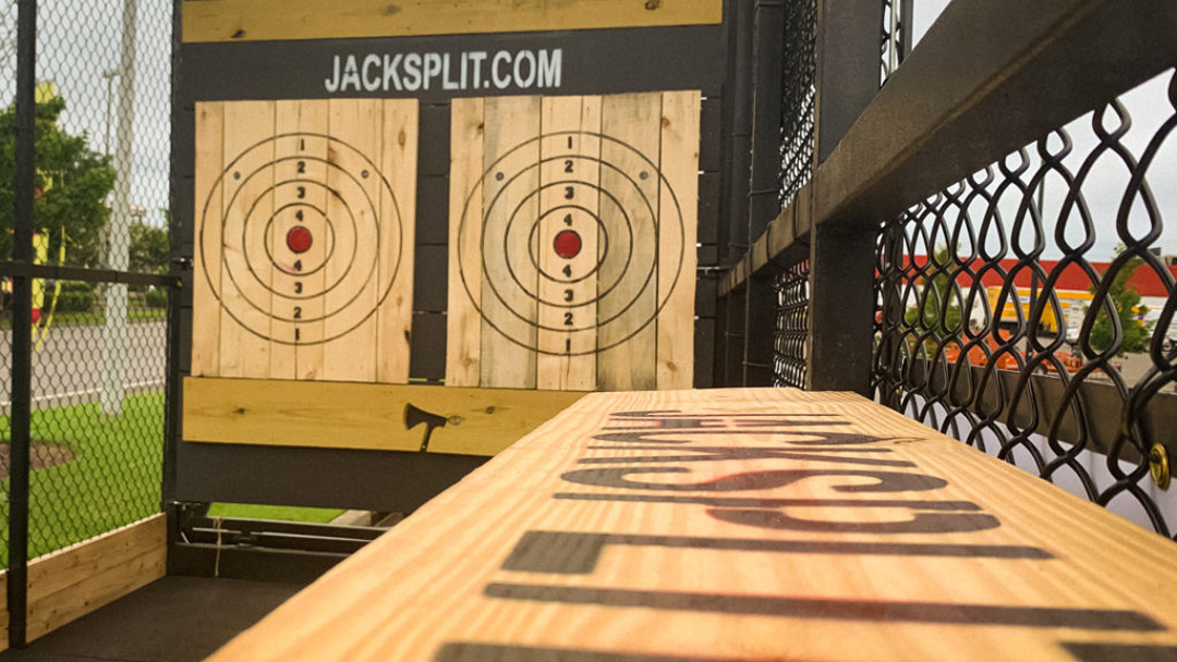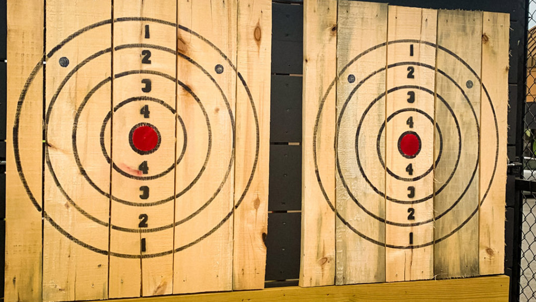 There’s almost no better way for two friends or a couple to hang out than to throw sharp objects into wood. Come on.